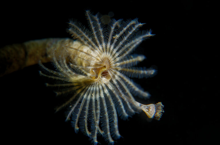 Op de tweede wedstrijddag duiken we 's morgens op Baixa da Cruz. Deze locatie kennen we ondertussen vrij goed, dus we gaan rechtstreeks op ons doel af. We passeren eerst langs de wand met de gele anemoontjes, daarna gaan we nog aan de slag met de vuurwormen die hier in grote aantallen voorkomen.